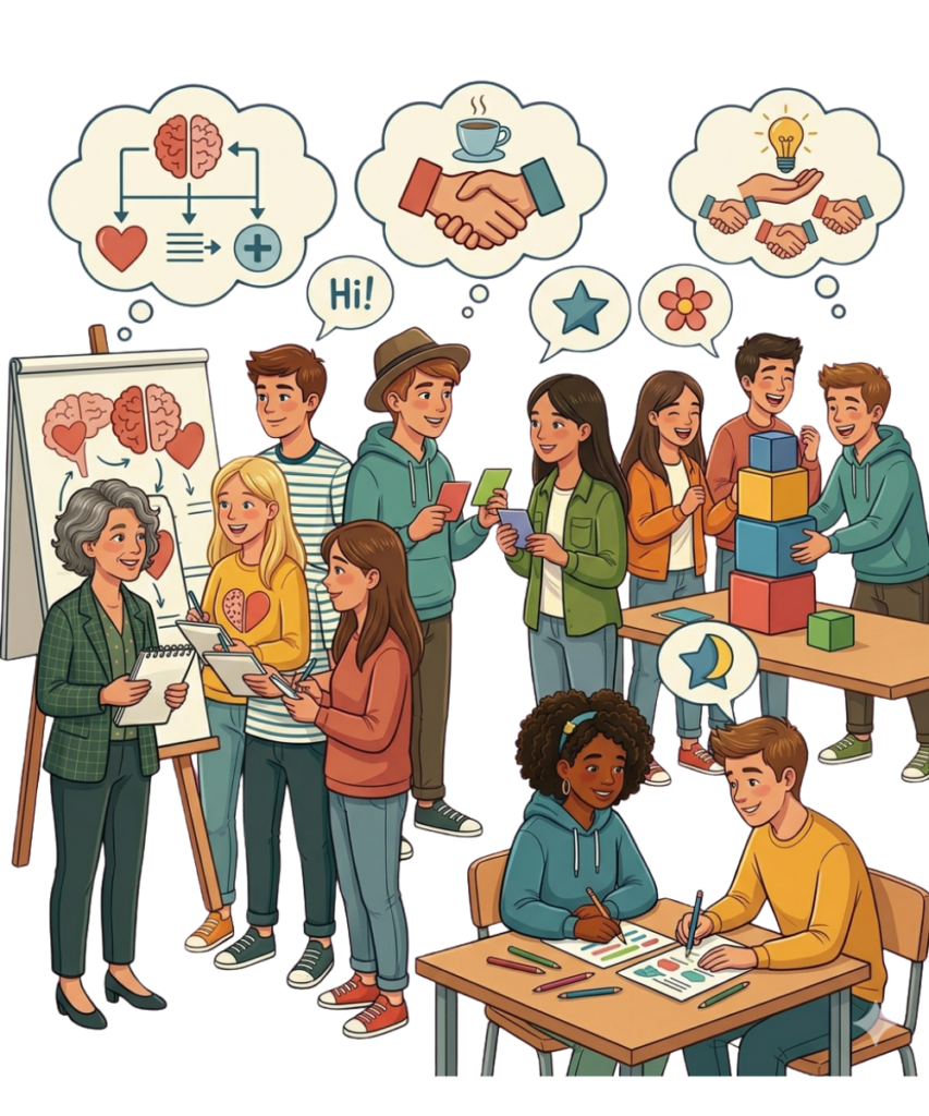 Skupine so namenjene mladim, ki želijo bolje razumeti sebe, svoja čustva in odnose z drugimi. Srečanja ponujajo varen prostor za pogovor o izzivih odraščanja, izmenjavo izkušenj ter učenje psiholoških strategij in veščin za boljše soočanje z vsakodnevnimi situacijami.
